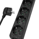 POWERTECH πολύπριζο PT-870, 5x schuko, 16A, 1,5m, μαύρο