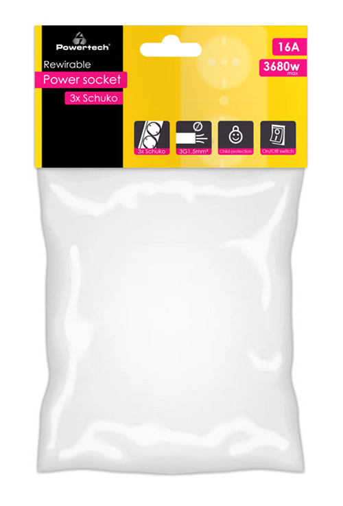 POWERTECH πολύπριζο PT-885, 3x schuko, 16A, χωρίς καλώδιο, λευκό