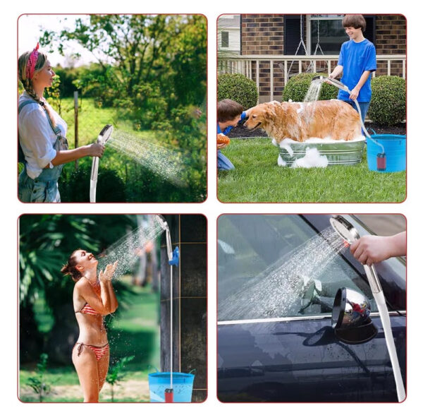 Εξοπλίζεται με ισχυρό μοτέρ το οποίο αντλεί το νερό που βρίσκεται κάτω από την ντουζιέρα (εντός λεκάνης ή άλλης πηγής με νερό) επιτρέποντας σας να απολαμβάνετε το ντους σας όπου κι αν βρίσκεστε.