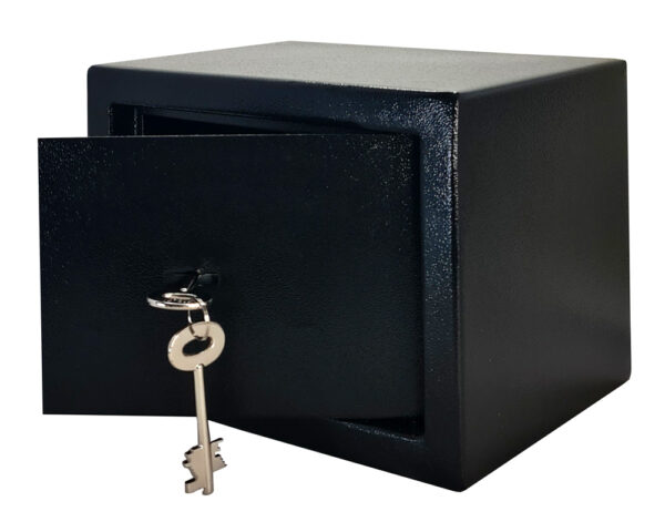 Χρηματοκιβώτιο της Powertech με δύο ενισχυμένους πύρους κλειδώματος, κατασκευασμένο από ατσάλι. Διαθέτει κλειδαριά με κλειδί για το κλείδωμα και ξεκλείδωμα του χρηματοκιβώτιου.