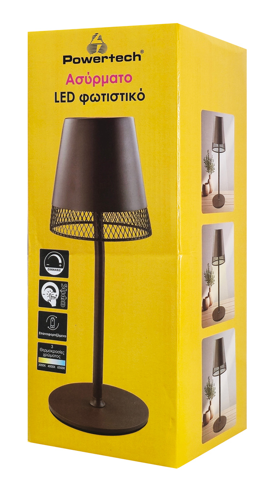 POWERTECH LED επιτραπέζιο φωτιστικό HLL-0191, ρυθμιζόμενο, επαναφορτιζόμενο, καφέ