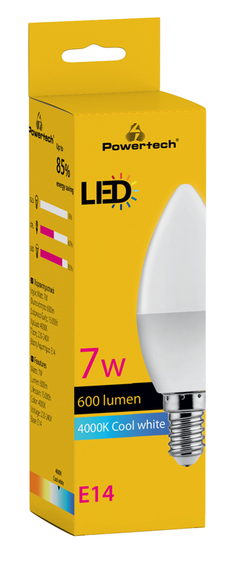POWERTECH LED λάμπα candle E14-011, 7W, 4000K, E14, 600lm