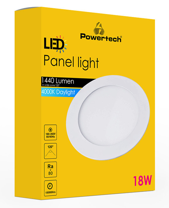Χωνευτό LED φωτιστικό οροφής Powertech, με ισχύ 18W και φωτεινή ροή 1440 lumens. Συνδέεται στην παροχή ρεύματος της οροφή του σπιτιού και προσφέρει εξαιρετικό φωτισμό σε συνδυασμό με καλαίσθητο και διακριτικό σχεδιασμό.