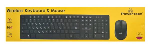Set περιφερειακών για PC από την Powertech που αποτελείται από ασύρματο πληκτρολόγιο και ασύρματο οπτικό ποντίκι.