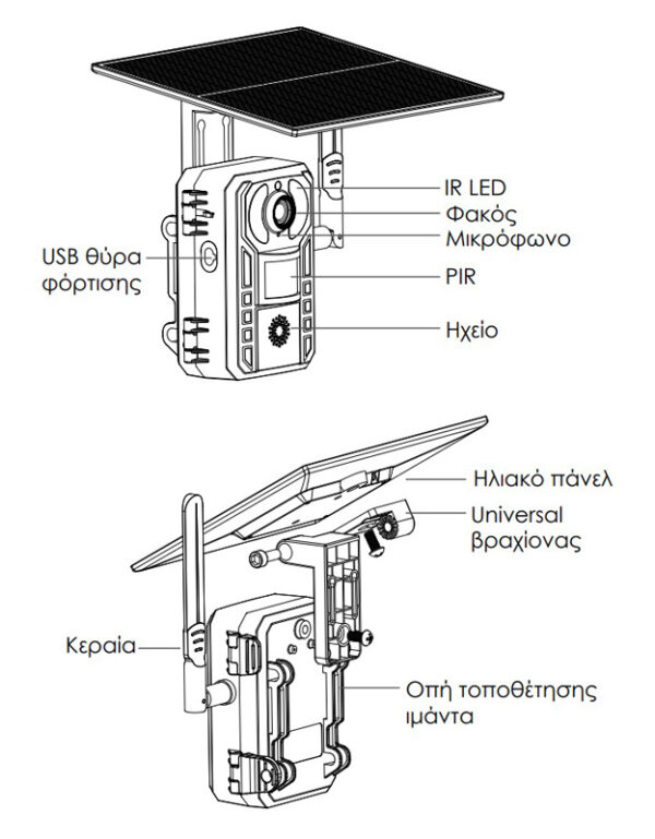 POWERTECH smart ηλιακή κάμερα κυνηγού PT-1178, 4MP, 4G, PIR, SD, IP66