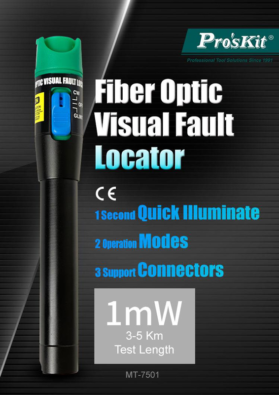 Το MT-7501 από την PROSKIT είναι ένα εργαλείο για την ανίχνευση της θέσης οπτικού σφάλματος σε οπτικές ίνες.