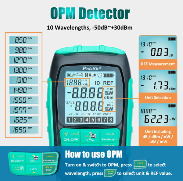 -Measuring wavelength: 850/980/1270/1300/1310/1490/1550/1577/1625/1650nm