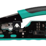 Πρέσα ακροδεκτών της PROSKIT, ιδανική για κοπή, απογύμνωση και πτύχωση καλωδίων δικτύου.