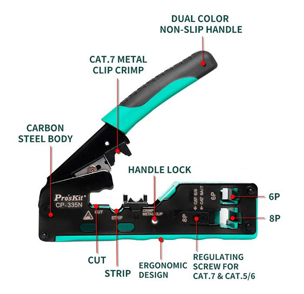 PROSKIT πρέσα ακροδεκτών CP-335N για καλώδια δικτύου CAT 5/6/7
