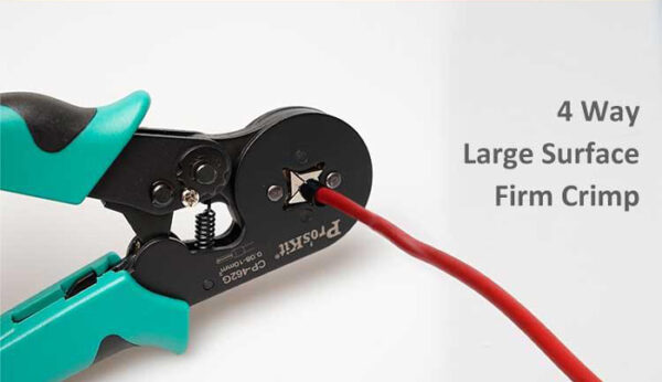 Πρέσα ακροδεκτών της PROSKIT, ιδανική για την πτύχωση καλωδίων με ή χωρίς μόνωση.