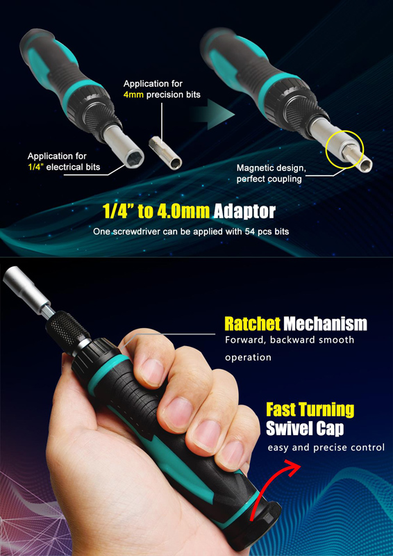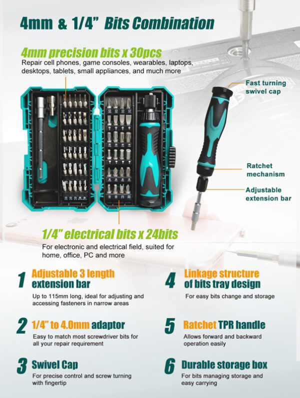 -Hex key bits: 3mm, 4mm, 5mm, 6mm