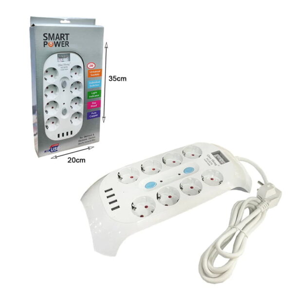 Qiao Sheng Πολύμπριζο 8 Θέσεων 10Α/250V-2500W 2m NO:3278 – Smart power 8 power socket