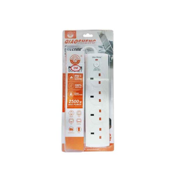 QiaoSheng Πολύπριζο Ασφαλείας με 4 Θύρες και Διακόπτη 2m 2500W – Power Strip with 4 Sockets and Switch