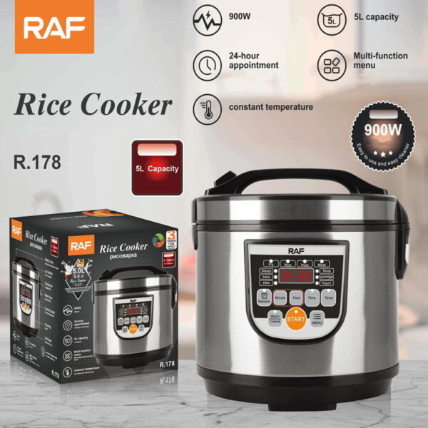 RAF Ηλεκτρικός Πολυμάγειρας Rice Cooker 5L 700W με Αντικολλητικό Μπολ και 12 Προγράμματα R.178 – Rice Cooker