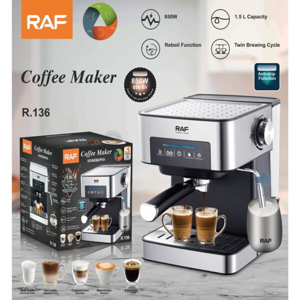 RAF Καφετιέρα Εσπρεσσιέρα με Ακροφύσιο 1.6L 850W R.136 – Espresso Coffee Maker