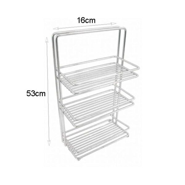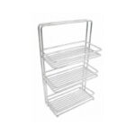 Ραφιέρα μπάνιου, μεταλλική τριώροφη, με ίνοξ εμφάνιση, για την αποθήκευση αναλώσιμων μπάνιου, συμπεριλαμβάνονται και οι βίδες στήριξης.