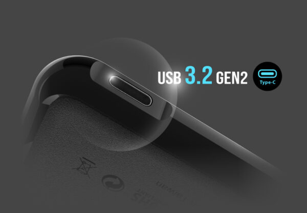 Χάρη στη διεπαφή USB 3.2 Gen 2, μπορεί να μεταφέρει δεδομένα με αστραπιαίες ταχύτητες, έως 10 Gbps, ενώ οι ταχύτητες ανάγνωσης και εγγραφής έως και 540 MB/s και 500 MB/s, αντίστοιχα, σας επιτρέπουν να ολοκληρώσετε τις εργασίες σας σε ελάχιστο χρόνο.