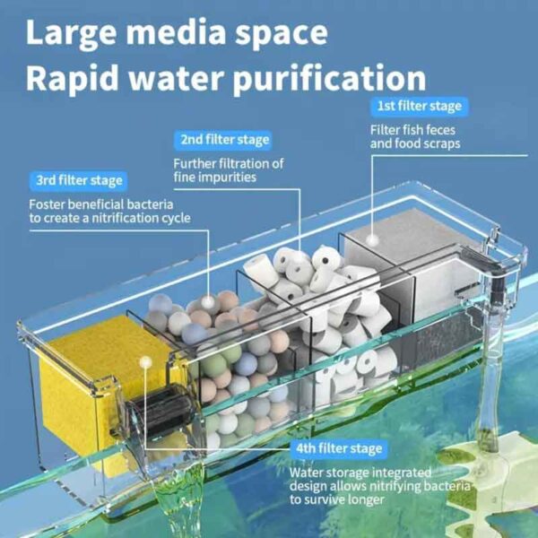 Εύκολη εγκατάσταση: απλά “κουμπώνει” στην άνω άκρη του ενυδρείου πάχους έως 10–12 mm .