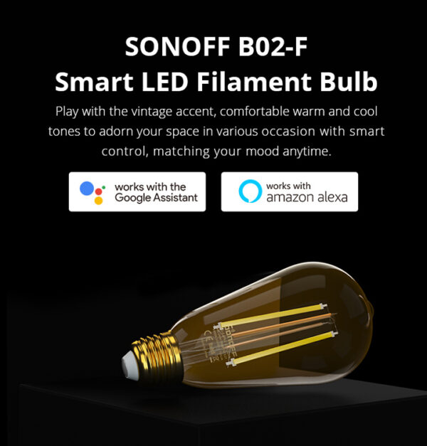 SONOFF Smart λάμπα LED Filament B02-F-ST64, Wi-Fi, 7W, E27, 1800K-5000K