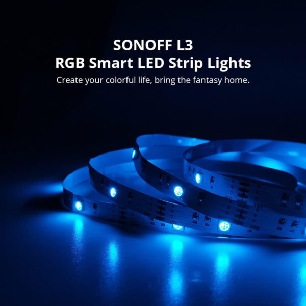 LED καλωδιοταινία L3 της Sonoff με RGB φωτισμό και μήκος 5 μέτρα. Ο έλεγχος της γίνεται απομακρυσμένα από smartphone μέσω Wi-Fi και της εφαρμογής eWeLink. Επιπλέον, υποστηρίζει φωνητικό έλεγχο με Amazon Alexa & Google Assistant.