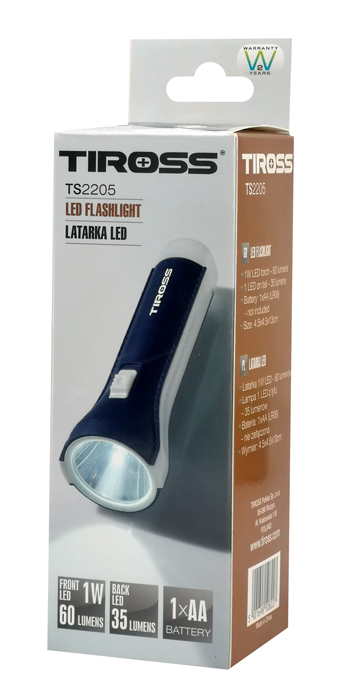 TIROSS φορητός φακός LED TS-2205, 60lm + 35lm, μπλε