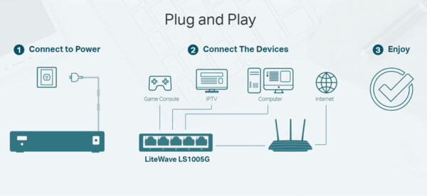 Τα TP-Link LiteWave Switch Unmanaged Series παρέχουν έναν εύκολο και οικονομικό τρόπο για να επεκτείνετε το ενσύρματο δίκτυό σας. Είναι εύχρηστα και αξιόπιστα. Με αυτά τα plug-and-play switch, μπορείτε να επεκτείνετε τις συνδέσεις δικτύου σας σε πολλές συσκευές αμέσως. Με όλες τις θύρες που υποστηρίζουν Auto-MDI / MDIX, δεν χρειάζεται να ανησυχείτε για τον τύπο του καλωδίου που θα χρησιμοποιήσετε.