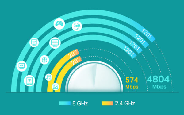 Wi-Fi 6 ταχύτητες έως 5400 Mbps, 4804 Mbps στα 5 GHz και 574 Mbps στα 2.4 GHz.