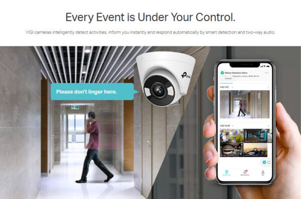 Δικτυακή κάμερα της TP-LINK με φακό 4mm και αισθητήρα ανάλυσης 4MP. Υποστηρίζει έγχρωμη νυχτερινή όραση, τροφοδοσία PoE, καταγραφή σε micro SD (δεν συμπεριλαμβάνεται) και εξοπλίζεται με εσωτερικό μικρόφωνο και ηχείο για αμφίδρομη μεταφορά ήχου.