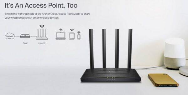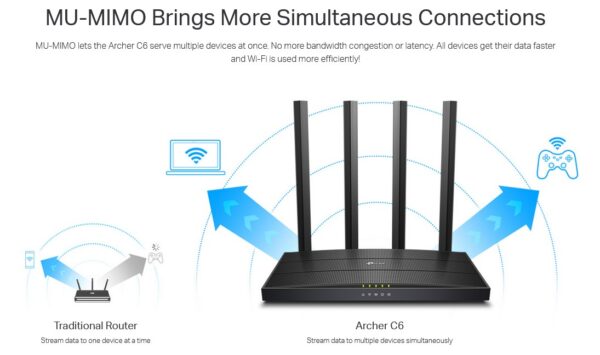 Το Archer C6 δημιουργεί ένα αξιόπιστο και γρήγορο δίκτυο που τροφοδοτείται από τεχνολογία Wi-Fi 802.11ac. Η ζώνη 2.4GHz παρέχει ταχύτητες έως 400Mbps, έτοιμη για καθημερινές εργασίες, όπως email και περιήγηση στο διαδίκτυο, ενώ η ζώνη 5GHz παρέχει ταχύτητες έως και 867Mbps, ιδανική για ροή βίντεο HD και online gaming χωρίς καθυστέρηση.
