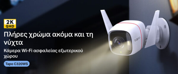 Η Wi-Fi εξωτερική κάμερα ασφαλείας TAPO-C320WS της TP-LINK, καταγράφει ακόμη και τις πιο μικρές λεπτομέρειες, σε ανάλυση 2560×1440 QHD, ακόμη και κατά την διάρκεια της νύχτας. Υποστηρίζει την τεχνολογία Motion Detection και Notifications, με την οποία ανιχνεύει κάθε κίνηση και ειδοποιεί με μήνυμα. Εξοπλίζεται με ηχείο και μικρόφωνο, επιτρέποντας την αμφίδρομη επικοινωνία με τα άτομα που βρίσκονται στον χώρο και έχει λειτουργία εκφοβισμού ανεπιθύμητων επισκεπτών με φως και ήχο. Έχει τη δυνατότητα αποθήκευσης αρχείων έως 256GB, σε κάρτα SD (δεν συμπεριλαμβάνεται). Είναι συμβατή με Google Assistant και Amazon Alexa για έλεγχο μέσω φωνητικών εντολών (σημείωση: ο φωνητικός έλεγχος δεν είναι διαθέσιμος σε όλες τις γλώσσες και χώρες).