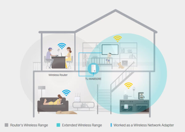 To wall-mounted TL-WA850RE έχει σχεδιαστεί για να επεκτείνει την ασύρματη κάλυψη σας εύκολα και να βελτιώσει την ισχύ του σήματος ενός υπάρχοντος ασύρματου δικτύου. Βοηθάει δραστικά στην εξάλειψη των «νεκρών ζωνών».