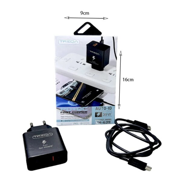 Treqa 35W Σούπερ γρήγορος φορτιστής κινητού με θύρα USB-C και καλώδιο δεδομένων Type-C CH-639 – PD+QC Fast charger