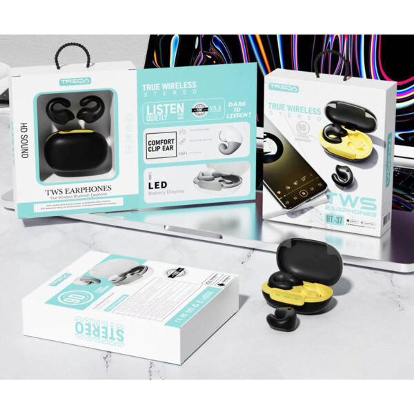 Τα earbud ασύρματα ακουστικά Treqa BT-37 συνδέονται με κάθε συσκευή που διαθέτει bluetooth. Συνοδεύονται από θήκη μεταφοράς και φόρτισης των ακουστικών.