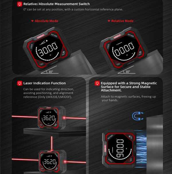 UNI-T ψηφιακό γωνιόμετρο laser LM320E, 4×90°, μαγνητικό σώμα, 1000mAh