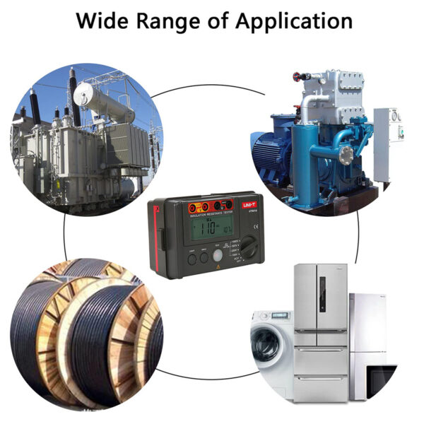 Τα tester μόνωσης της σειράς UT500 χρησιμοποιούνται για τη μέτρηση της αντίστασης μόνωσης του ηλεκτρικού εξοπλισμού και των οικιακών συσκευών. Αυτό γίνεται μετρώντας την αντίσταση μόνωσης μεταξύ ηλεκτρικών κυκλωμάτων ή μεταξύ κυκλωμάτων και γείωσης. Η σειρά UT500 μπορεί να μετρήσει την αντίσταση μόνωσης, την Τάση AC, τη χαμηλή αντίσταση, το PI (Polarization Index) και το DAR (Dielectric Absorption). Αυτά τα εργαλεία διασφαλίζουν την ασφαλή και σωστή λειτουργία μετασχηματιστών, γεννητριών, κινητήρων υψηλής τάσης, πυκνωτών ισχύος, καλωδίων τροφοδοσίας, απαγωγών και άλλου είδους ηλεκτρικού εξοπλισμού.