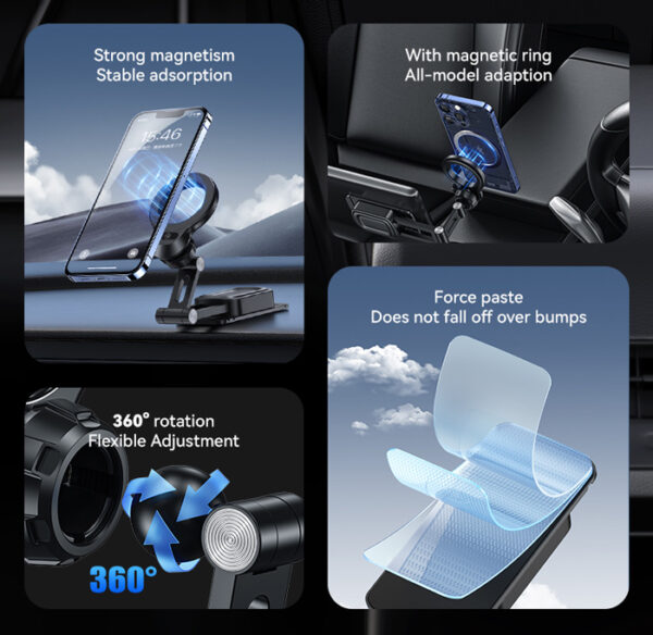 Συγκρατεί το smartphone σταθερό και ασφαλές με ισχυρή μαγνητική δύναμη ενώ η επιφάνεια που μαγνητίζεται το smartphone είναι επενδυμένη από αντιολισθητικό, μαλακό υλικό.
