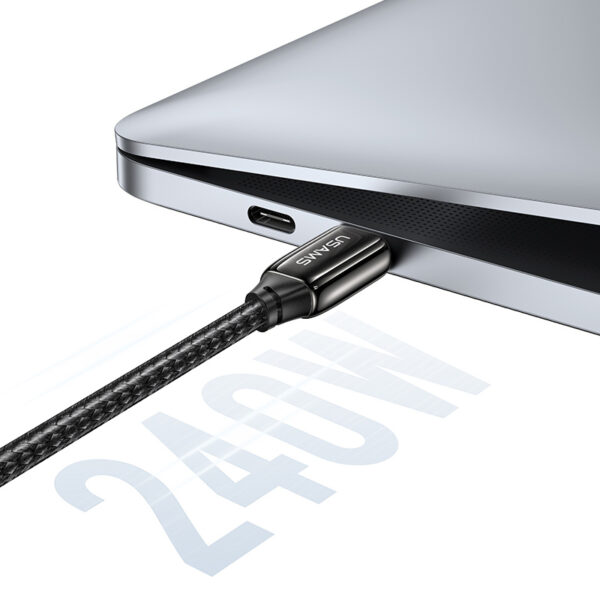 Καλώδιο φόρτισης και μεταφοράς δεδομένων USB-C σε USB-C της Usams. Υποστηρίζει φόρτιση με απόδοση έως 240W και μεταφορά δεδομένων με ταχύτητα έως 480Mbps.