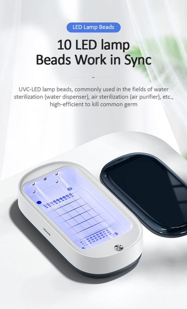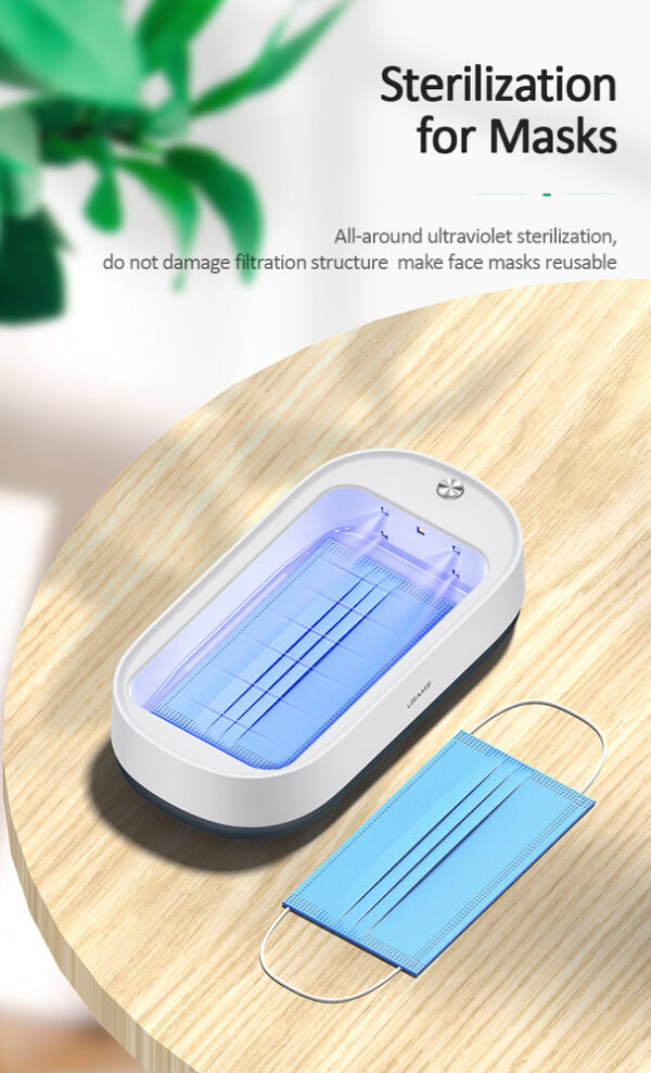 UV Αποστειρωτής κινητών τηλεφώνων αλλά και άλλων, μικρών αντικειμένων που εξουδετερώνει σε 5 λεπτά το 99.9% των βακτηρίων. Τροφοδοτείται μέσω USB Type-C θύρας. Στη συσκευασία συμπεριλαμβάνεται καλώδιο τροφοδοσίας.