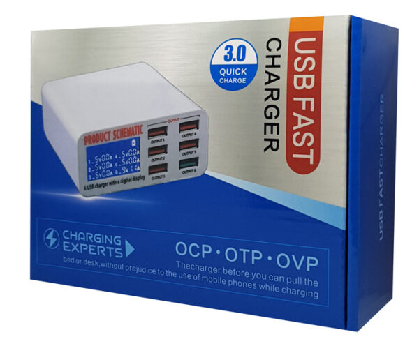 USB φορτιστής 6 θέσεων με LCD monitor BST-U3, 5V 8A, 40W