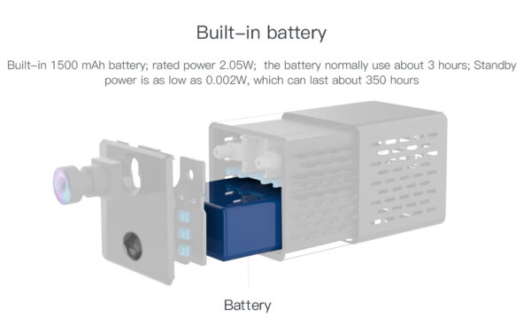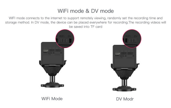 Η κάμερα μπορεί, επίσης, να ενεργοποιήσει ηχητικό και οπτικό συναγερμό κατά τον εντοπισμό παραβίασης. Υποστηρίζει 2 τρόπους λειτουργίας, WiFi και DV η οποία δίνει την δυνατότητα καταγραφής στην κάρτα microSD, χωρίς να απαιτείται ασύρματο δίκτυο και λειτουργία νυχτερινής όρασης για την παρακολούθηση ακόμη και στο σκοτάδι. Στην συσκευασία συμπεριλαμβάνονται όλα τα απαραίτητα αξεσουάρ εγκατάστασης αλλά και αντάπτορας για την τροφοδοσία της κάμερας.